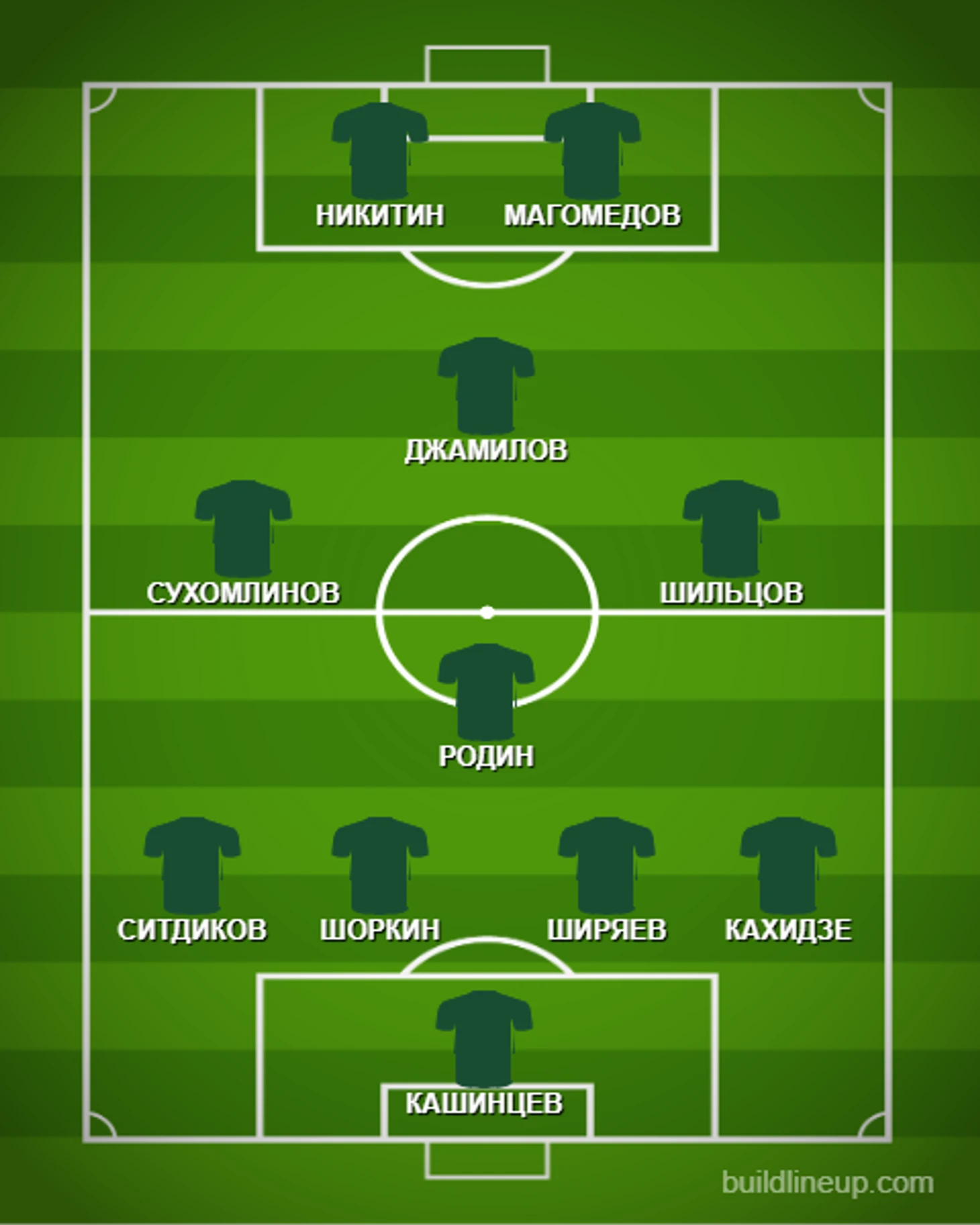 Исходя из короткой обоймы в 14-15 игроков, которые могут претендовать на основной состав, мой выбор пал на тех счастливчиков, которые можно увидеть на картинке. Прежде всего обращаем внимание, что после травм должны вернуться Джамилов (по новой информации ему потребуется еще около месяца, хотя уже тренируется в общей группе) и Шоркин.