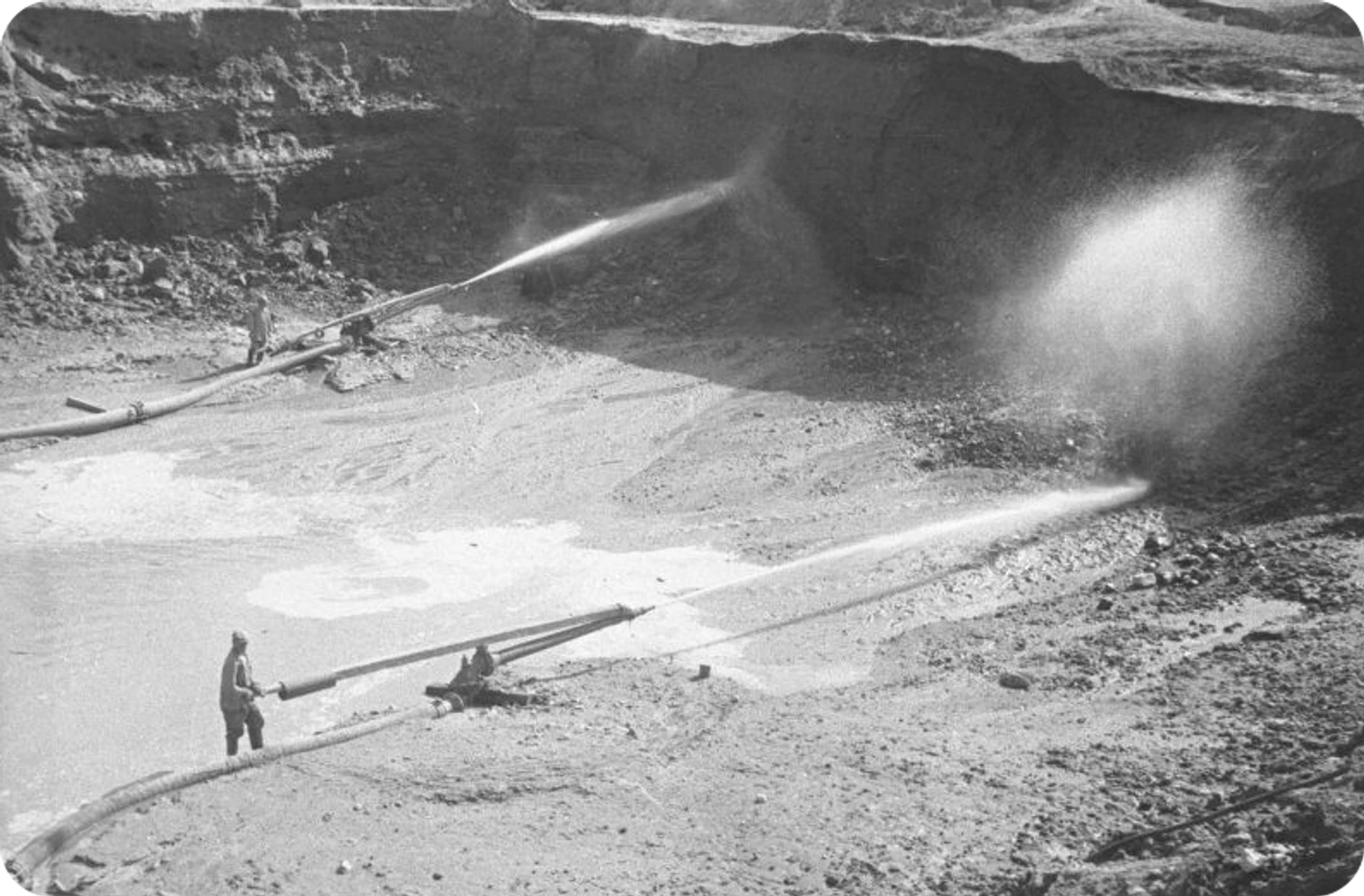 Ответ прост – механизация, и не простая, а «гидро». Отличительной чертой Дистанции №1 стал особый способ разработки грунта. Впервые на Метрострое в ход был пущен гидромеханический метод разработки породы.