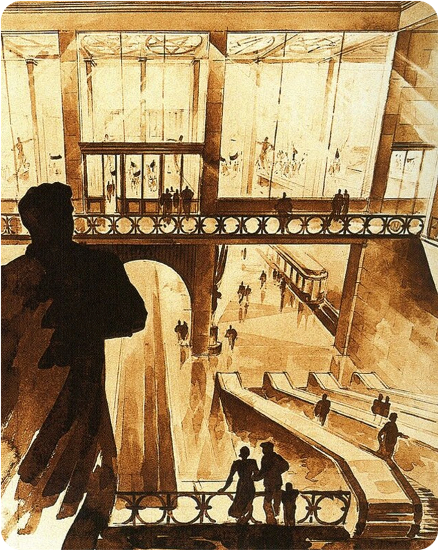«Весенний выходной 194… года. Я сел в поезд метро на станции Площадь Революции и через двадцать минут оказался под сводами станции Стадион имени Сталина <…> Миновав наземный вестибюль, я очутился на улице. Дорога стометровой ширины, украшенная статуями, фонтанами, обсаженная деревьями, вела к Центральному стадиону СССР имени Сталина…» – о таком будущем грезил один из корреспондентов московской газеты «Ударник Метростроя» в сентябре 1939 года.