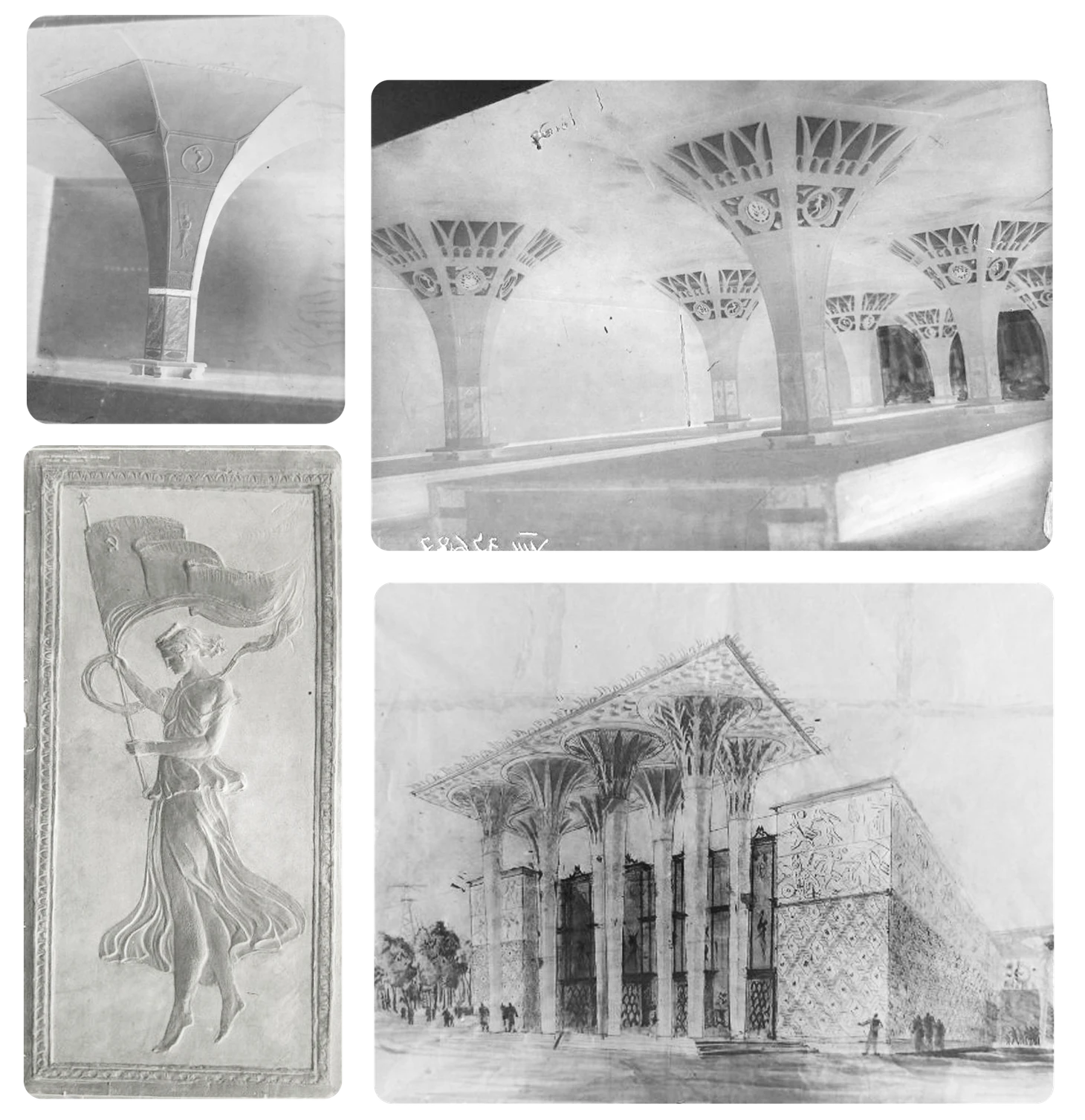 Отдельные симпатии завоевали идеи Таушканова – представителя «архитектурной молодежи Москвы». Три других проекта основывались на привычной конструктивной схеме – классические балки и колонны. Таушканов увидел станцию совсем иной, придав ей «воздушность и спортивную легкость». За конструктивную основу молодой архитектор предложил взять идеи легендарного Шухова. Вместо привычных колонн – решетчатые сквозные опоры, которые также служили источниками освещения (в нижней части опор отводилось место под мощные прожекторы). Корифеям-архитекторам понравилось использование кирпичной кладки, как контрастного фона для барельефов.