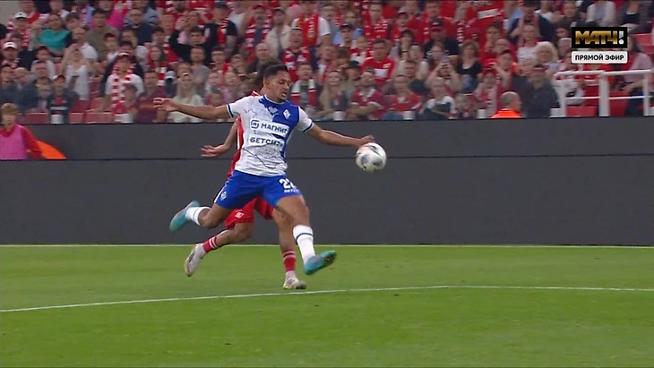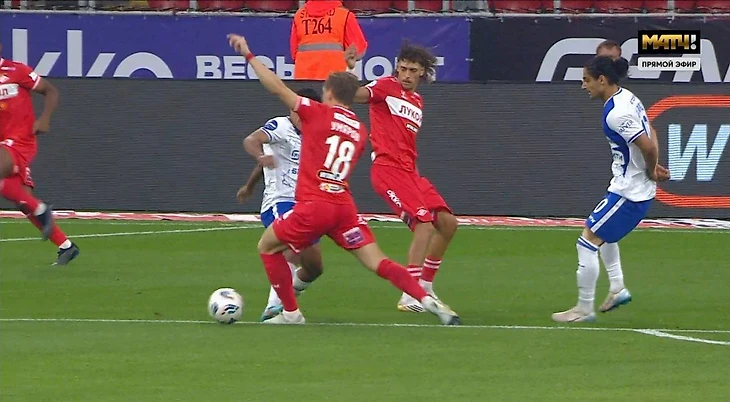 Сам наступ не вызывает вопросов, но важно другое. За мгновение до Аззи попал по мячу, выбил его из-под ноги спартаковца.