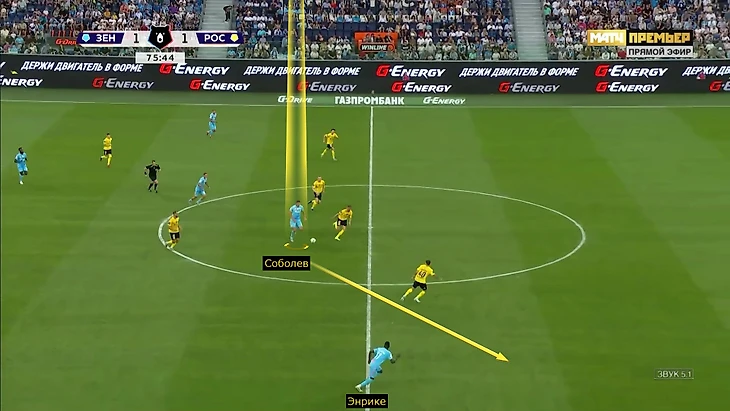 Еще «Зенит» ускорился благодаря выходу Соболева. Если раньше «Ростов» перекусывал Кассьерру, то Александр зацепил вынос Нино в первой фазе атаки перед пенальти – и снова запустил Энрике в прорыв. Как раз Соболев нагрузил штрафную перед фолом на Энрике (назначили пенальти).
