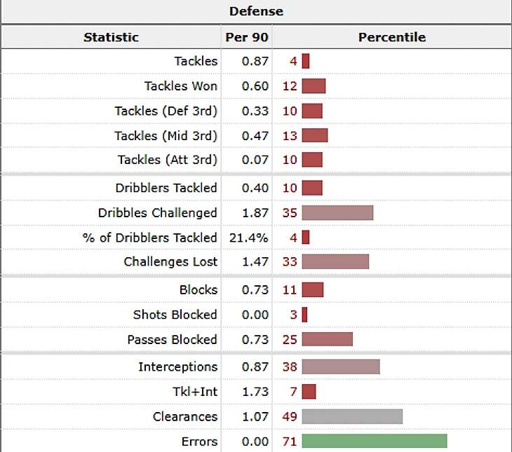 А вот сравнительная статистика сезона 2021/2022, где наш герой по сути дела играет хуже 90% представителей своей позиции по ряду показателей. Это в тот момент, когда уходит чернорабочий Дэн Джеймс, и приходит Криштиану Роналду без каких-то склонностей к игре в обороне, как по стилю, так и по возрасту. Погба предпочитает лечиться, ну или показывать вот такое вот отношение к черновой работе в самой интенсивной лиге мира.