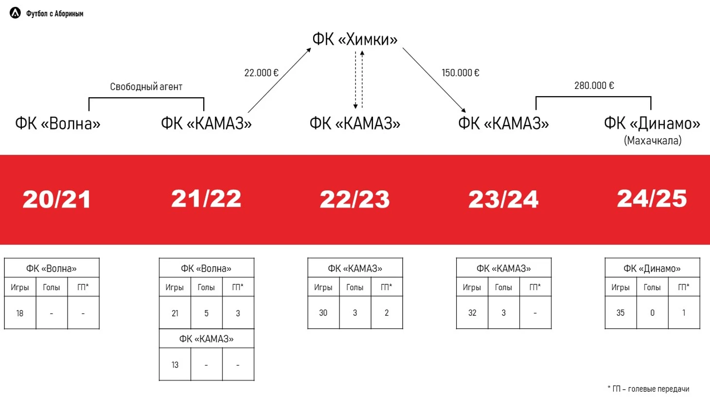 На первый взгляд ничего удивительного в информации, приведенной на инфографике выше нет. За несколько сезонов Пальцев проделал путь из команды, выступающей во второй лиге (ранее - ПФЛ), в команду, дебютирующую в РПЛ. Однако, если углубиться в статистику и обратить внимание на аномальную результативность в сезоне 21/22, то вскрывается интересная деталь.