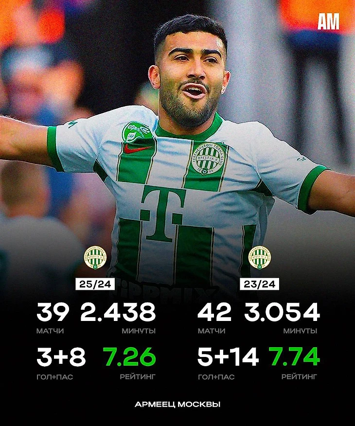 Летом 2023-го наш главный герой переезжает в Будапешт и подписывает четырёхлетний контракт с местным гегемоном «Ференцварешем», за который он и выступал последние два года.