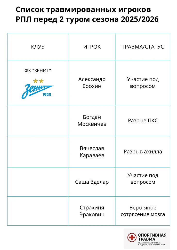 Медицинское превью 2-го тура РПЛ: список травмированных