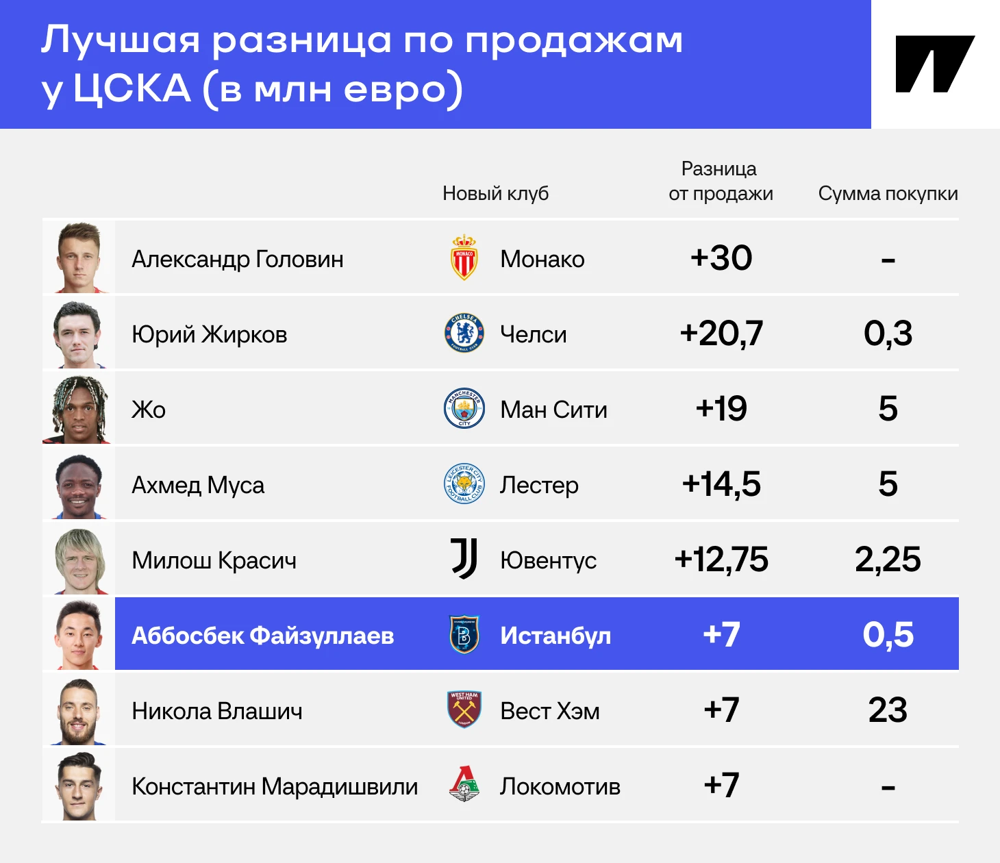 ЦСКА умеет продавать. Аббос – новый пример в рейтинге выручки
