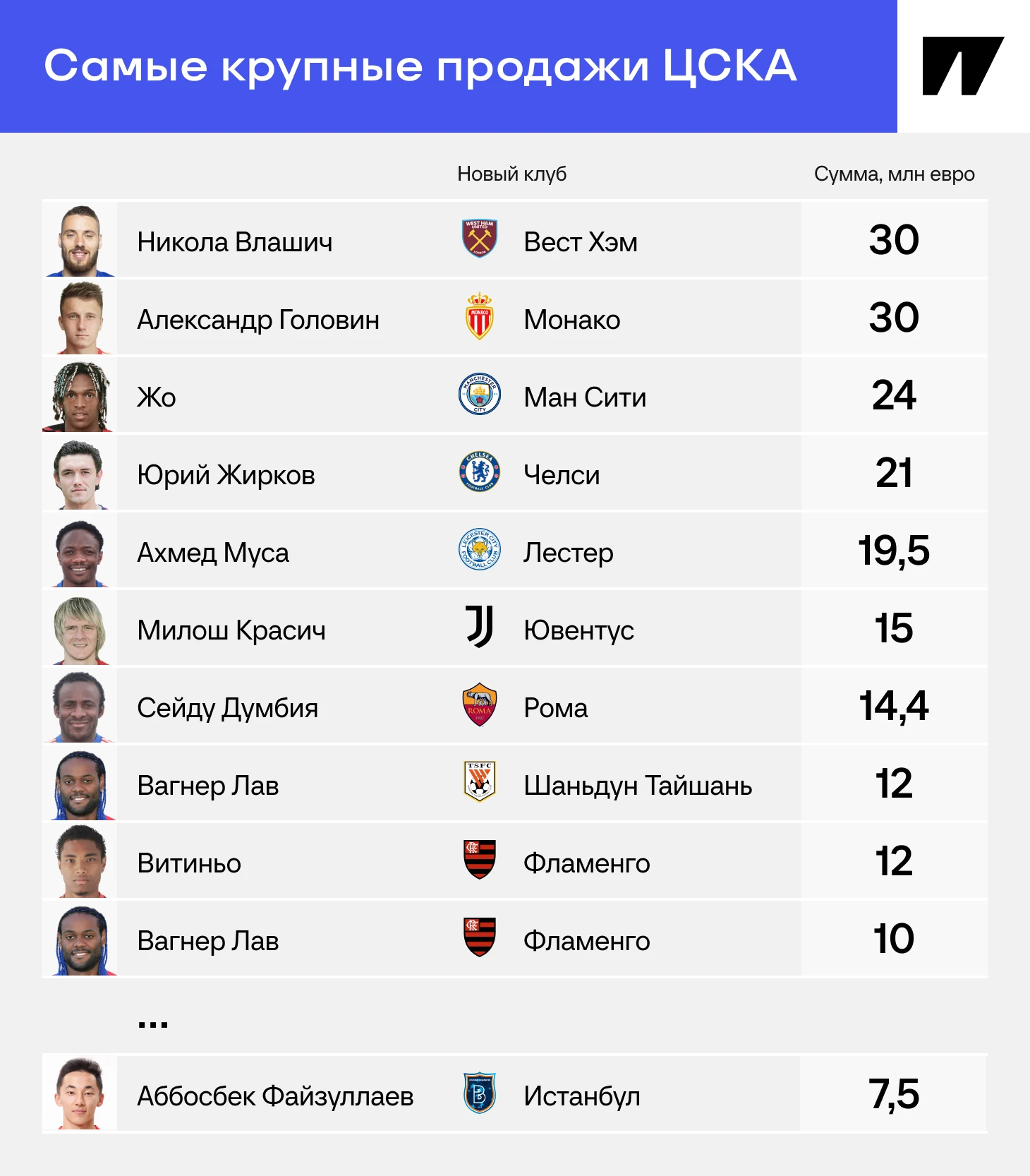 На ком ЦСКА заработал больше всех: мощнее Файзуллаева только продажи в топ-лиги