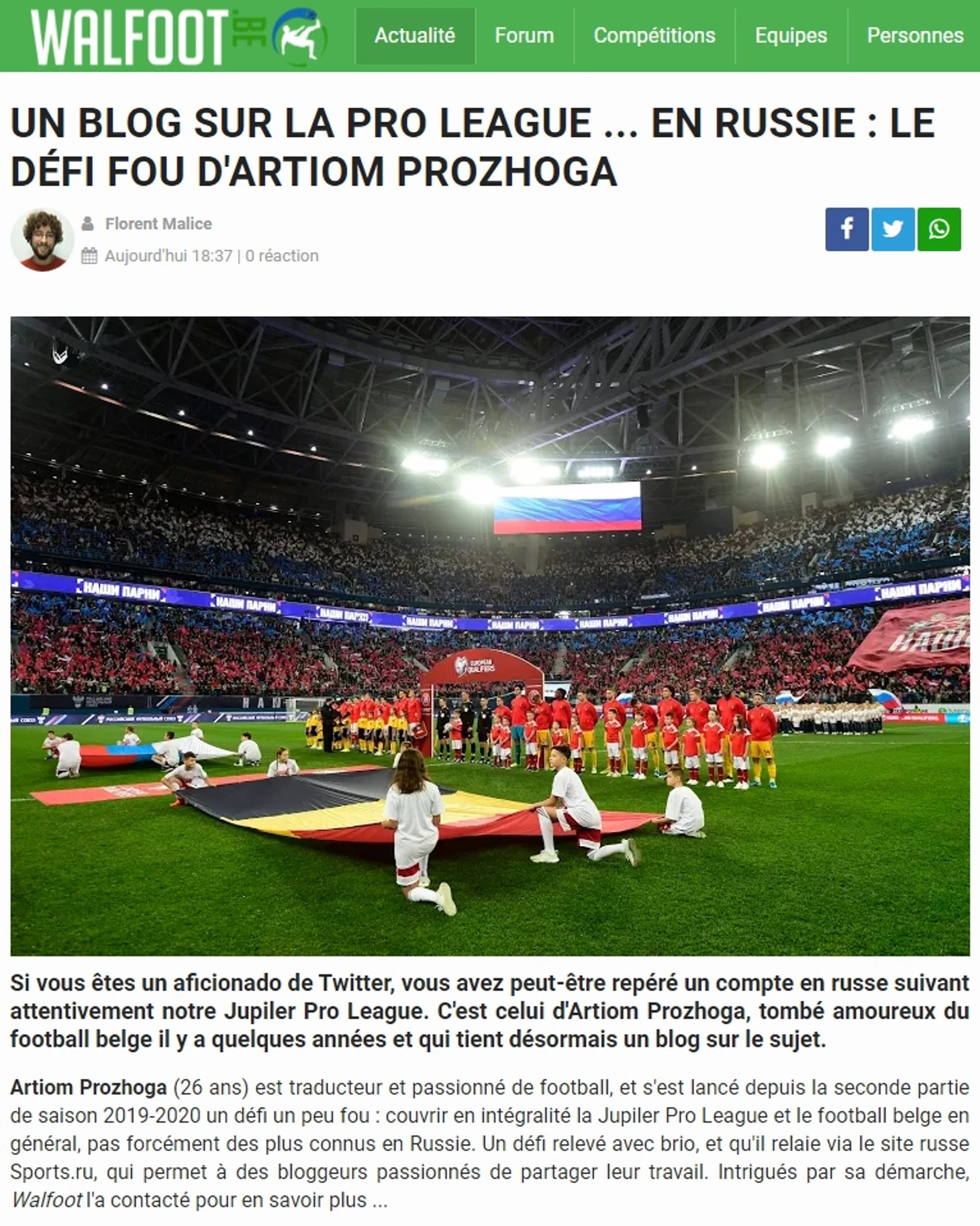 Недавно я отметил юбилей: вот уже 10 лет занимаюсь бельгийским футболом.