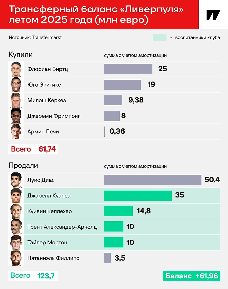 А вот как выглядит трансферный баланс «Ливерпуля» с учетом этого правила.