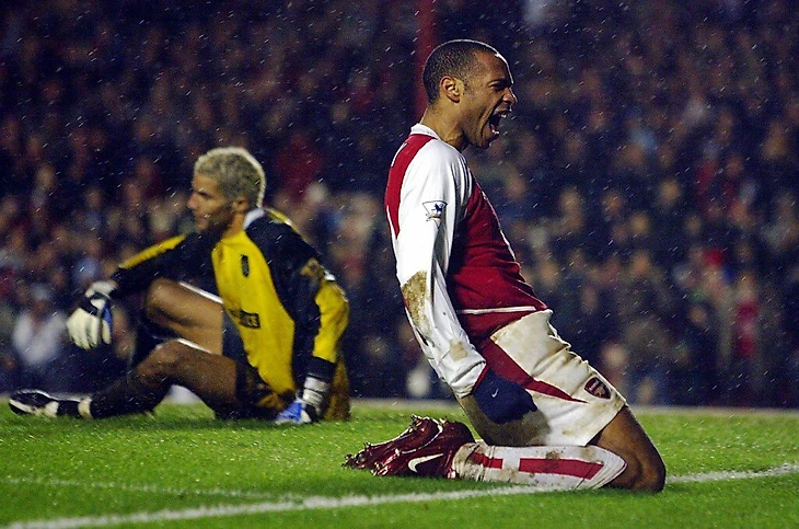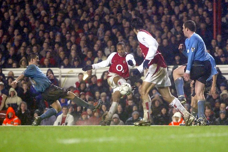 ● Спустя почти год, в декабре, «Арсенал» сыграл 2:2 с «Челси», новой большой силой АПЛ. Анри сделал дубль – так и оставшись до конца чемпионата единственным, кому это удалось. Второй гол был чистой комедией: Анри пробил со штрафного без свистка, пока Петр Чех у левой штанги только выставлял стенку. Игроки «Челси» спорили, но Тьерри до этого не было дела – он уже скользил по газону в направлении рекламного щита «Рено», где красовался слоган Va Va Voom! (По занятному совпадению Анри в начале нулевых подписался с французской маркой машин и снимался в роликах, повторяя на камеру то самое Va Va Voom).