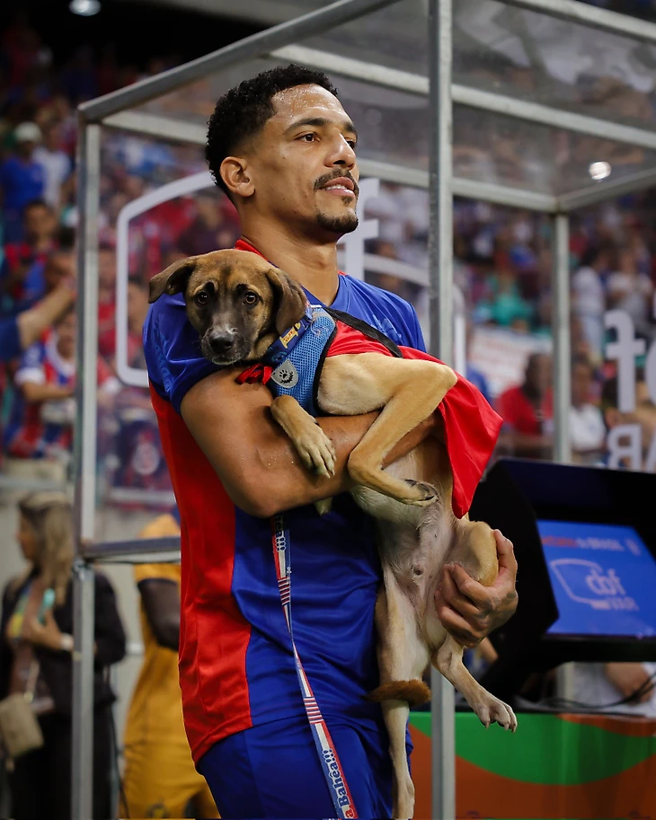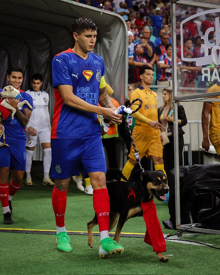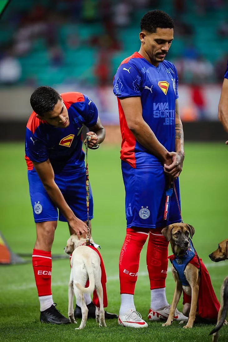 Бразильский клуб «Баия» пошел дальше. Игроки креативно прорекламировали выход нового фильма о Супермене, а заодно помогли местному приюту, появившись на поле с собаками, которых можно забрать домой.