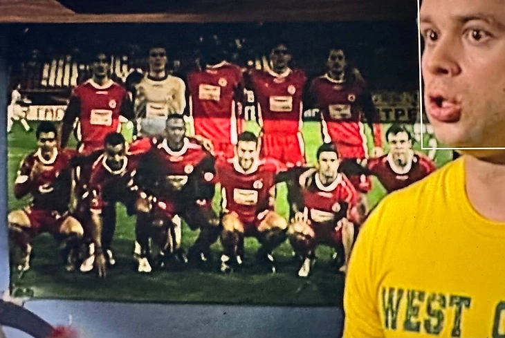 Уверенности в том, что на фото у Кузи именно софийский ЦСКА, добавляет и расстановка для общей фотографии – позиции многих игроков совпадают. Лучше всех на стоп-кадре получился самый правый в нижнем ряду – это Радослав Забавник, будущий защитник «Терека». Его внешность легко узнается на обоих кадрах.