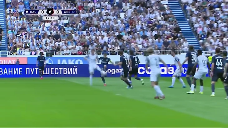 Хотя уже 2 года, как ЭСК нам рассказала, что «если нападающий закончил действие, сыграв в мяч», последующий контакт защитника не наказывается пенальти, если тот не сыграл «безрассудно или агрессивно». И соответственно должен быть наказан ЖК. И в первом туре в игре с ЦСКА за почти такой же фол на Шиманском пенальти не назначили, хотя признаков «безрассудности» там было - «выше головы». Но судья рассудил по-своему, на то он и Кукуляк. Со второй попытки (после вмешательства ВАР Федорова) Балтика пенальти реализовала, а в начале тайма второго в быстрой атаке забила еще раз. После этого произошел обмен голами в обоюдных быстрых атаках - сначала Оренбург сделал счет 2:1, а еще через пару минут Балтика восстановила разрыв в 2 мяча. Ну а на 68 минуте произошел интересный момент - Гюрлюк забил со штрафного, но положение «стенки»