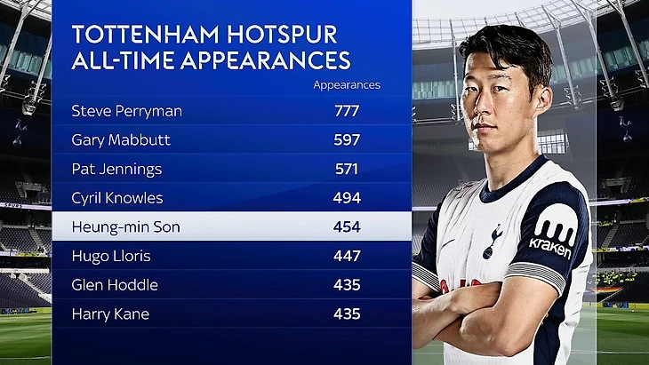 Сон – пятый игрок в истории «шпор» по количеству проведенных матчей за клуб