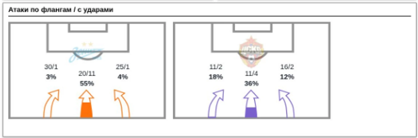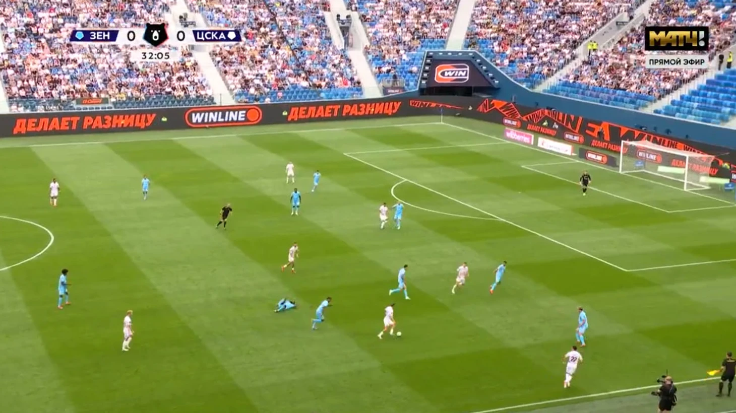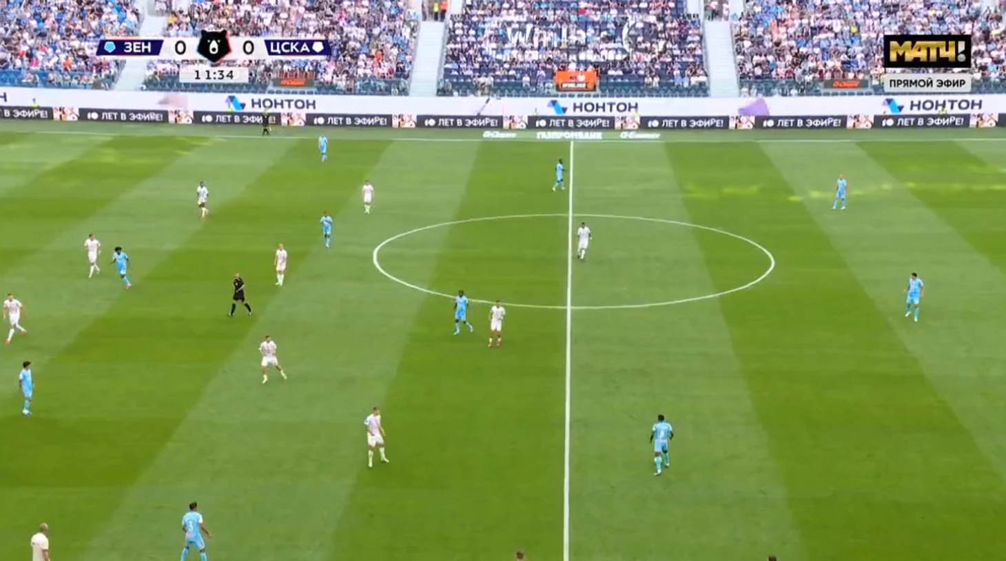 Были моменты, когда игроки встречали очно, в основном это случалось в рамках опеки и чаще — в оборонительных структурах «Зенита», Кисляк и Обляков грамотно действовали под давлением, а Жерсон и Вендел опекали их персонально при прессинге и ситуативно (1 в 1) в блоке, считая моменты под давлением от одного из двух бразильцев — потерь у игроков «ЦСКА» в центре поля не сосчитал (даже если говорить в целом), если брать наоборот, то игроки центральной оси «армейцев» реже персонально опекали бразильцев из «Зенита», но пару таких моментов тоже было, и частично они даже доходили до получения мяча одним из полузащитников, в большинстве заканчивающимся удачным действием.