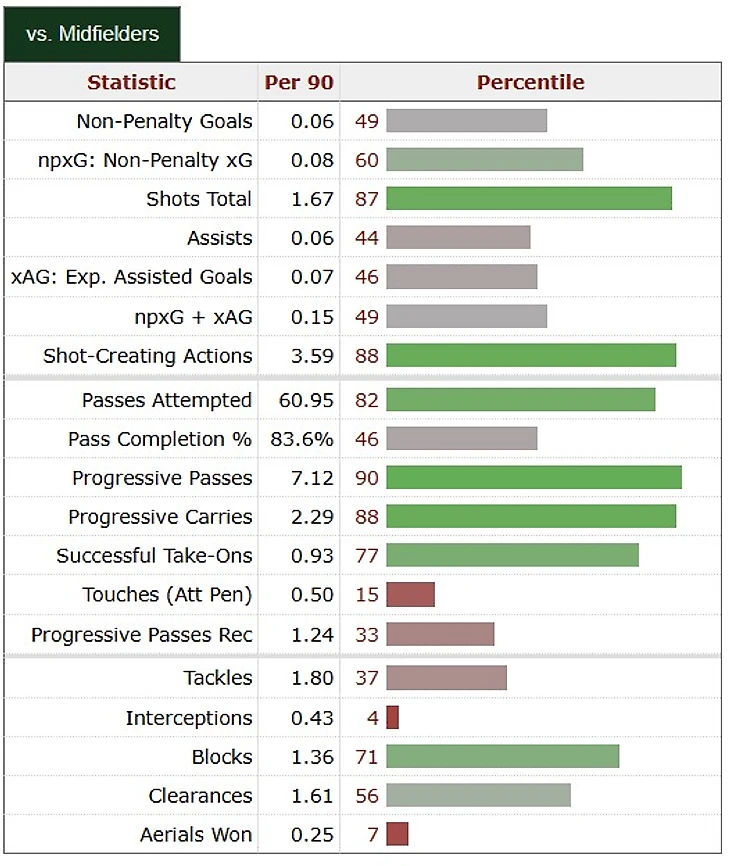 Впечатление, что работает с мячом выше, чем классический опорник. Неизвестно, сможет ли опускаться в тройку защитников или отдать правильный первый пас из глубокой позиции