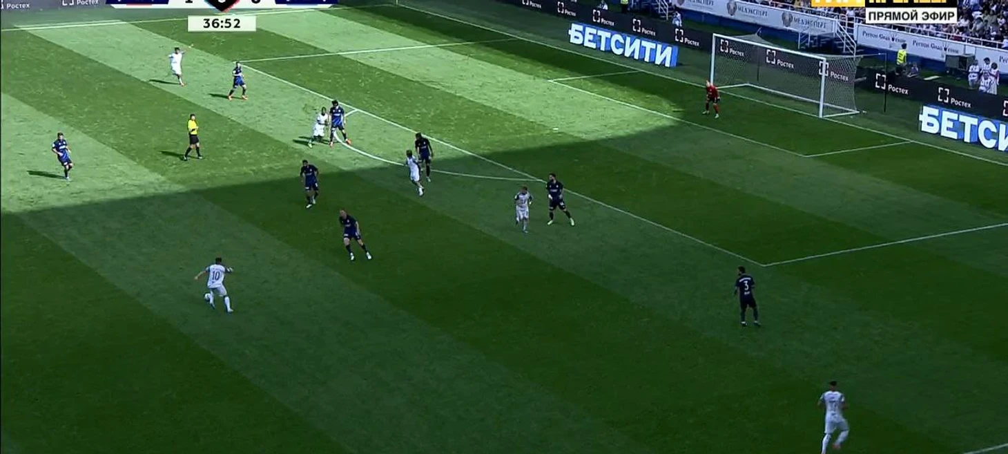 Атака как по учебнику: длинная передача от центрального защитника Гассама, скидка от полузащитника Ильи Петрова, далее во время небольшой суматохи уже Максим Петров (правый инсайд) забегает за спину защитникам соперника. Мяч вновь оказывается у Ильи, и тот идеальным забросом выводит 1 на 1 своего однофамильца первым же касанием. 3 вертикальных паса, небольшой рикошет и выход 1 на 1 – вся атака уложилась менее чем в 15 секунд.