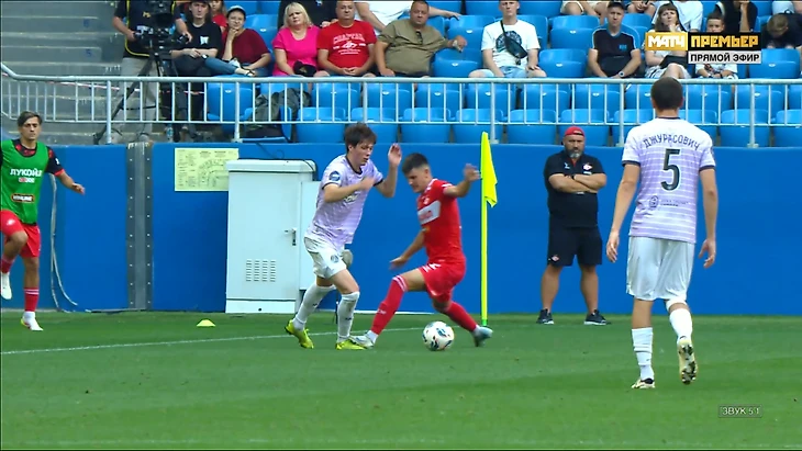 Говоря о количестве неоднозначных судейских решений в игре, стоит отметить, что их было всего два. Первое случилось уже на второй минуте: Мартинс ворвался в чужую штрафную площадь и откликнулся на прострел, мяч отрикошетил от ноги спартаковца в ногу Джаковацу и улетел за лицевую линию. Судьи момент не увидели и ошибочно назначили удар от ворот.