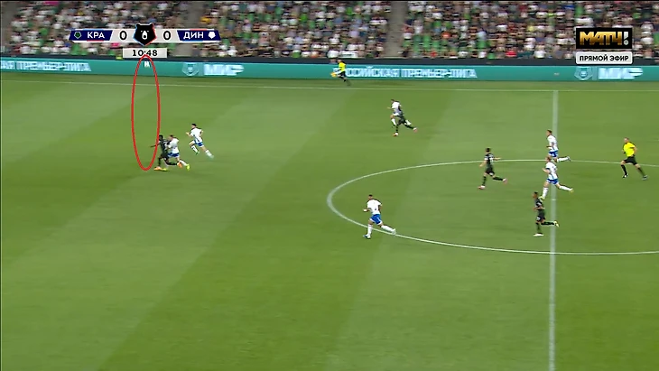 К слову о Маричале, защитник «Динамо» также успел избежать наказания за фол против Кордобы. Случилось это на 55 минуте, когда Маричаль прихватил руками форварда «Краснодара» и повалил его на газон, не позволив принять передачу.