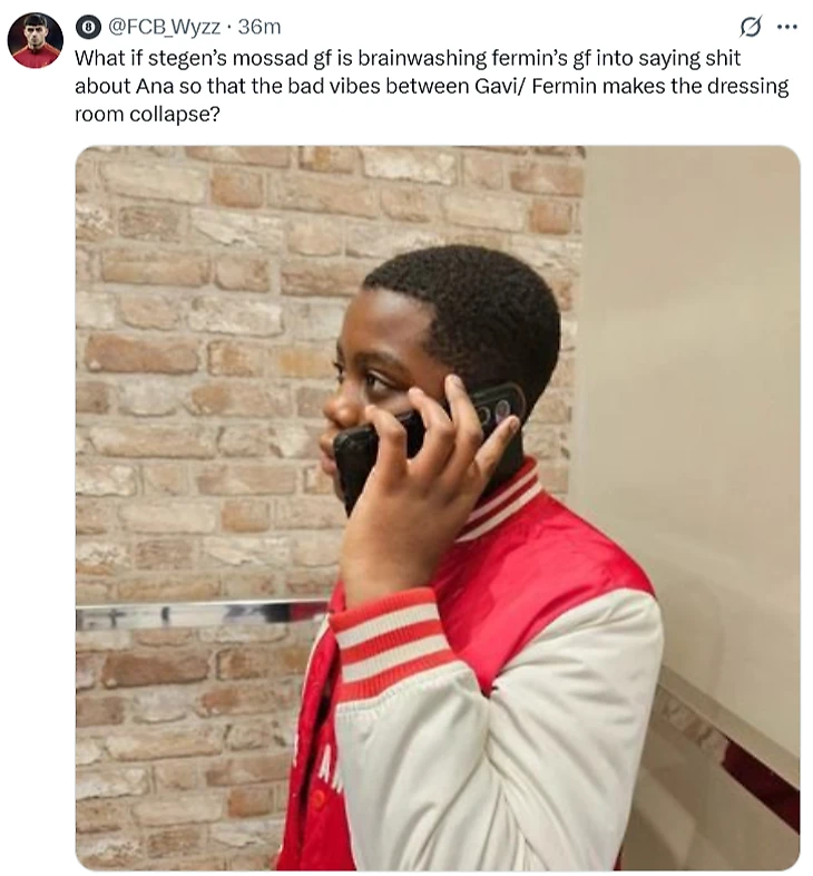 💭 «А что, если девушка Тер Стегена промыла мозг девушке Фермина, чтобы та говорила гадости про девушку Гави, а все это чтобы испортить отношения Гави и Фермина и разрушить раздевалку?»