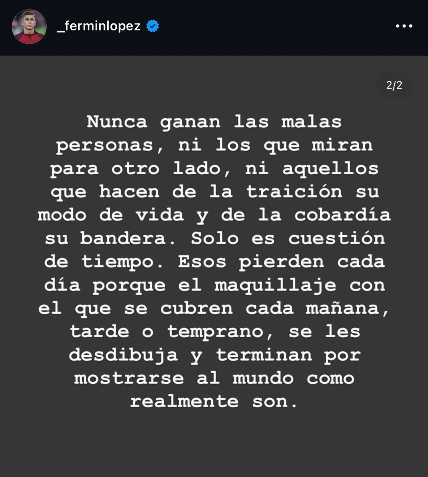 Болельщики решили, что Фермин в этой публикации обратился к Гави. Не прошло и часа, как Лопес пост удалил, а комментарии в своей инсте закрыл.