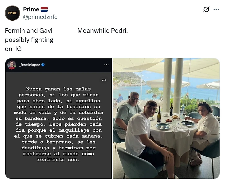 💭 «Фермин и Гави, видимо, ругаются в соцсетях, в то же время Педри».