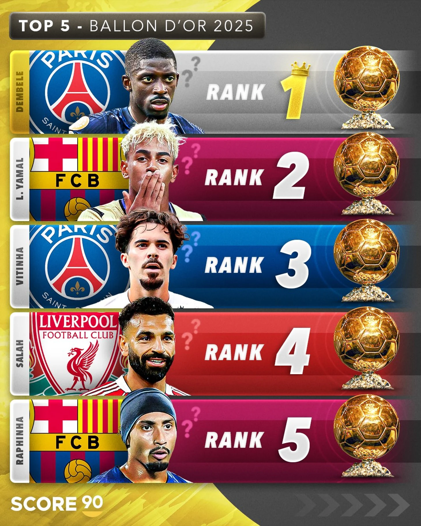 После оглашения претендентов на «Золотой мяч» Score90 составил топ-5 фаворитов на награду, основываясь на прогнозах букмекеров.