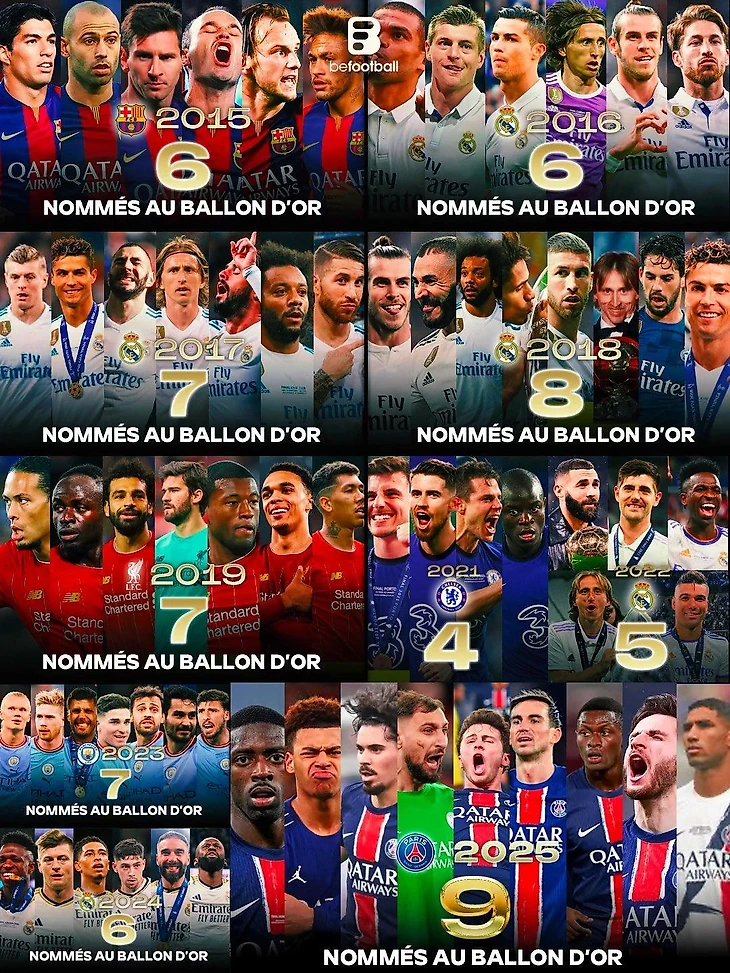 France Football опубликовал список номинантов на «ЗМ», а «ПСЖ» побил рекорд «Мадрида». Вот о чем речь