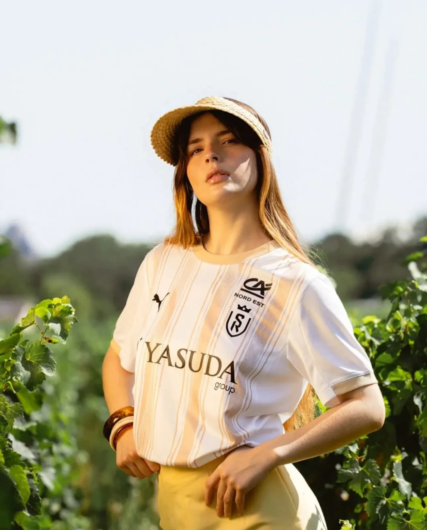 Французский клуб гостевым комплектом напоминает нам, что Реймс располагается у западной границы района известняковых почв Шампани и является одним из центров производства данного напитка.