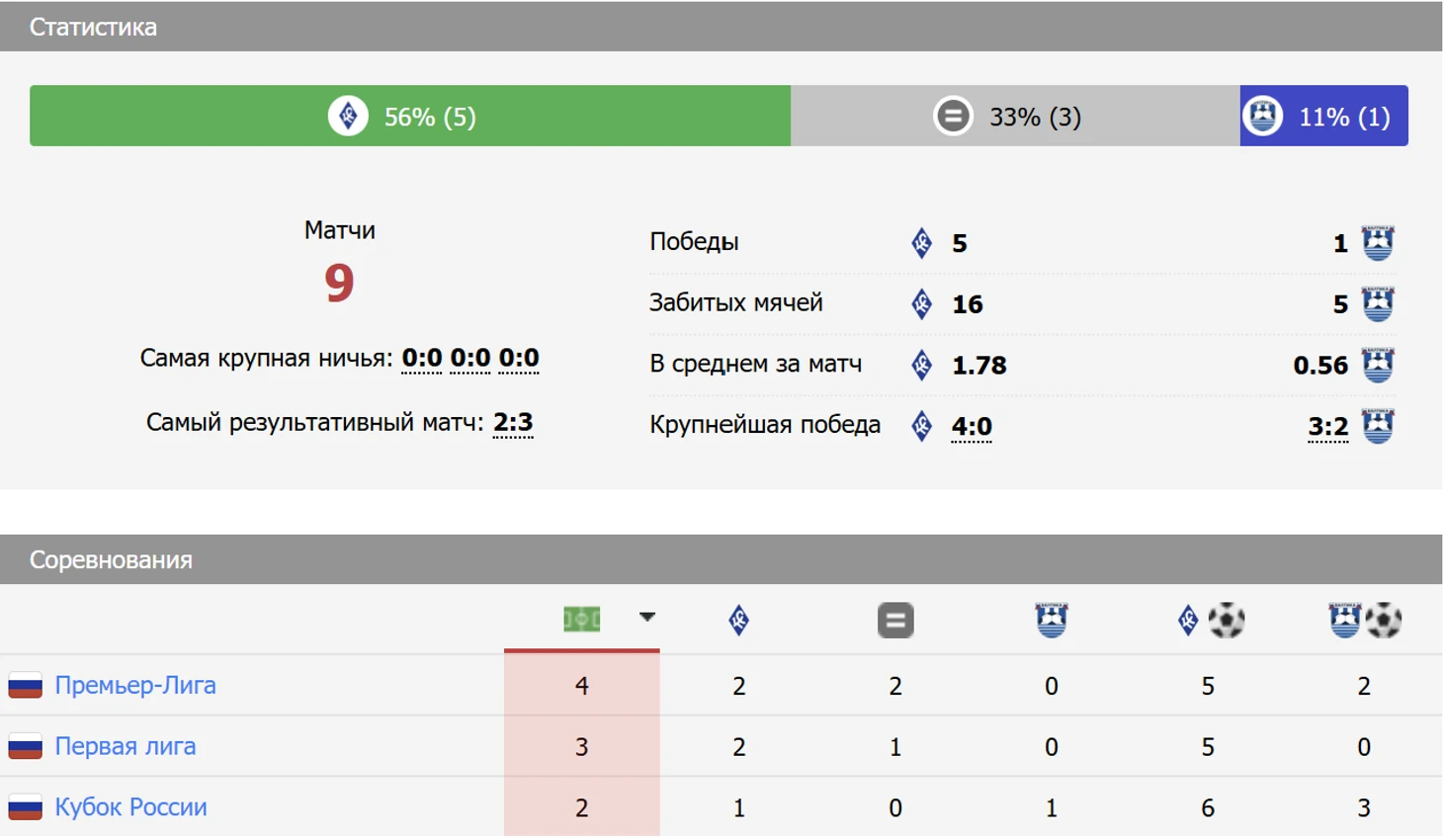«Балтика» ни разу не побеждала «Крылья» на выезде в РПЛ и ФНЛ