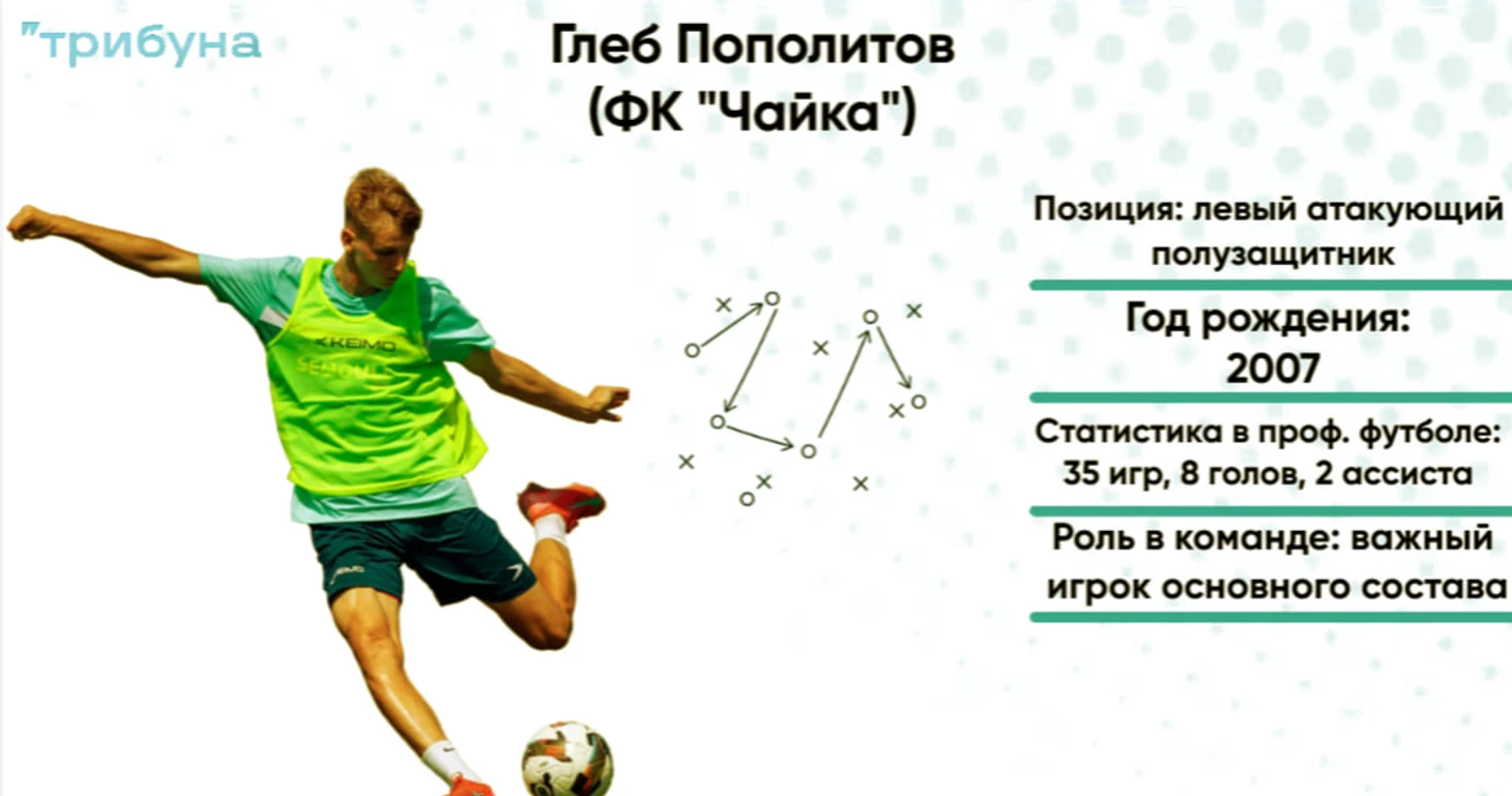 Глеб Пополитов (2007 г.р.) — ЛВ/ПВ. Начинал в филиале ФК «Краснодара» — «Краснодар-Юниор», в который перебрался из местной футбольной липецкой (место рождения игрока) команды. В сезоне 20/21 перешел в школу ФК «Строителя», взрослая команда которого на тот момент выступала в проф. футболе, через пару лет Глеб за них достаточно хорошо дебютировал во Второй Лиге дивизионе Б, на тот момент игроку было 15 лет. После добротного для своих возможностей и статуса сезона игрока заметил «Спартак», пригласив его в свой дубль. Там Пополитов провел один сезон, быстро освоился — стал основополагающим игроком, забив 5 мячей. Сезон 25/26 Глеб начинает в песчанокопской «Чайке», куда перешел за большинством игроков и тренером (из «Спартака-2»), являясь одним из самых ценных трансферов в созидательную линию. Давайте разберем, что помогает Пополитову играть на таком уровне в столь юном возрасте и так хорошо начинать путь в новой команде (3 из 3 выходов в старте в первых турах, много полезных действий и один забитый гол).