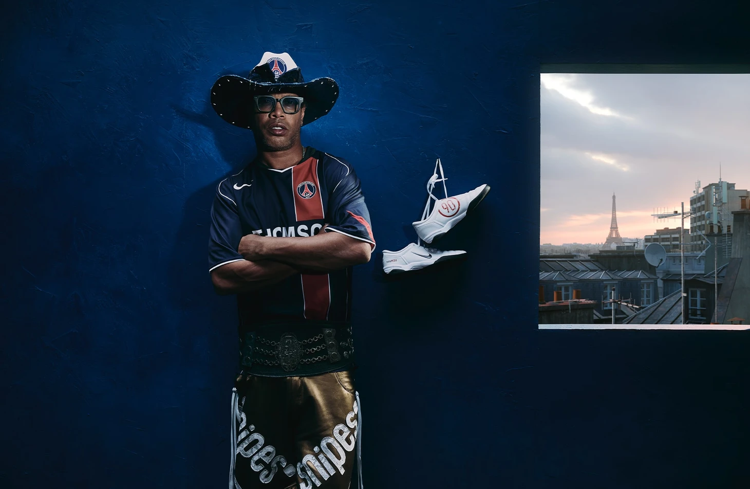 Помимо футболки, переиздание также включает спортивный костюм Total 90 и пару бело-красных кроссовок T90 с эмблемой «ПСЖ» – отличное дополнение для фанатов.