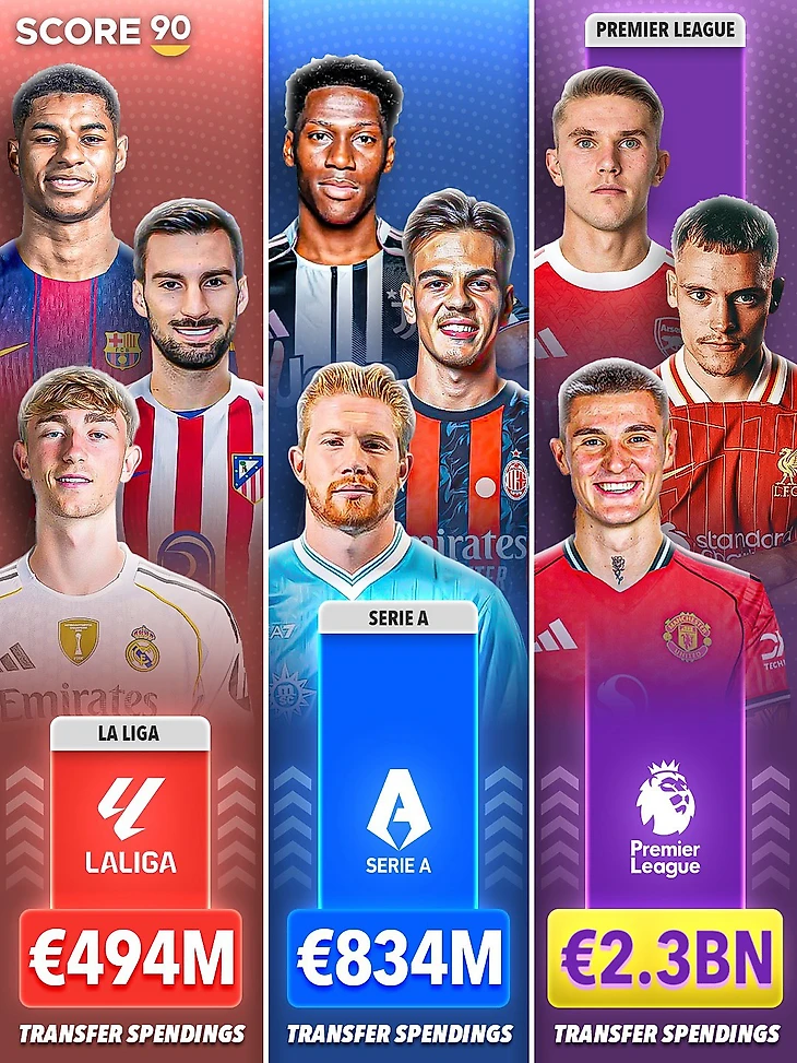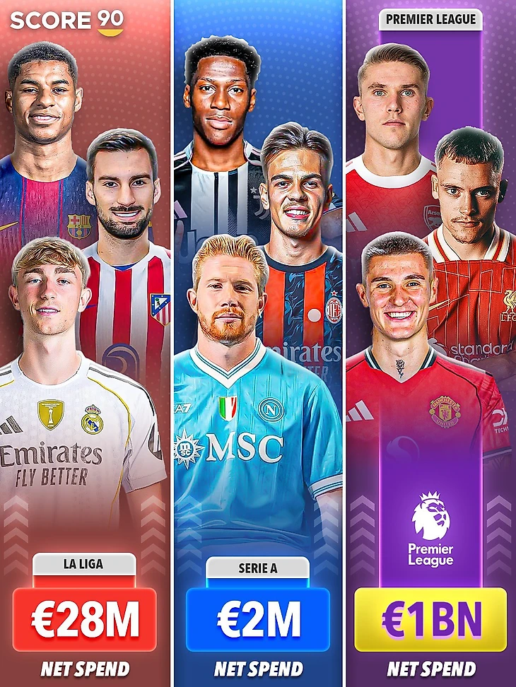 💸 Сколько лиги потратили и заработали этим летом? На разницу между АПЛ и Серией А с Ла Лигой лучше не смотреть