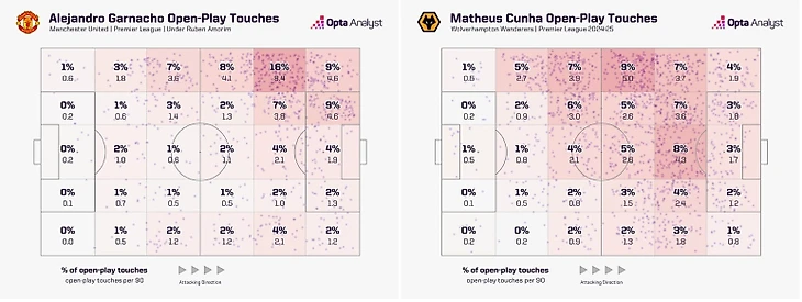 Кунья (71,5%), хоть и бил чаще Гарначо, активнее участвовал в пасовых комбинациях (38,4 против 37,8 за 90 минут), несмотря на меньшее владение мячом «Вулверхэмптона» (47,9%) по сравнению с «Юнайтед» (53,4%). Это говорит о его большей вовлечённости в игру.