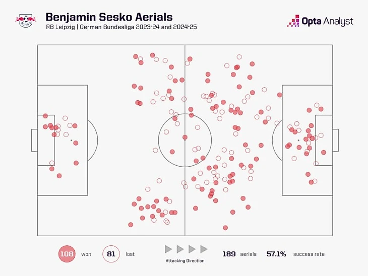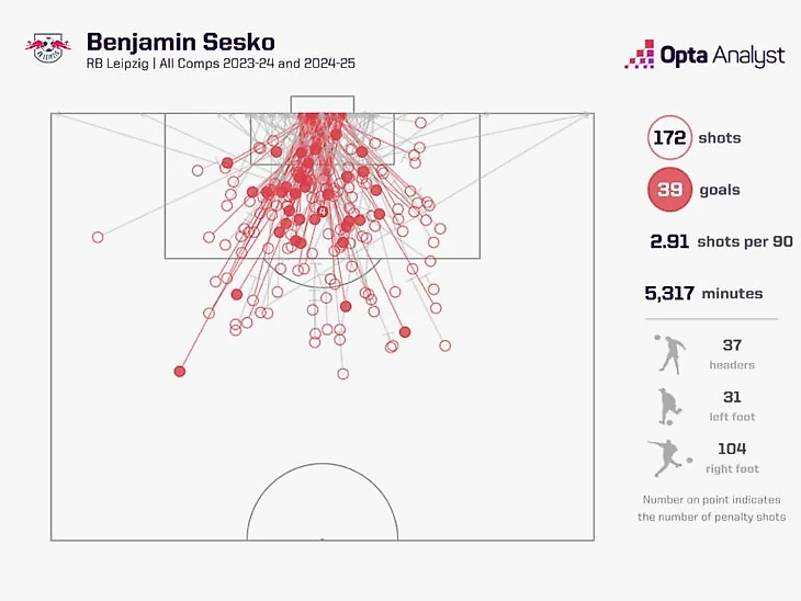 На показатели Шешко также повлиял факт игры в схеме с двумя нападающими в «РБ Лейпциге», тогда как в «Манчестер Юнайтед» ему, скорее всего, предстоит быть единственным центрфорвардом при поддержке Куньи и Мбемо.