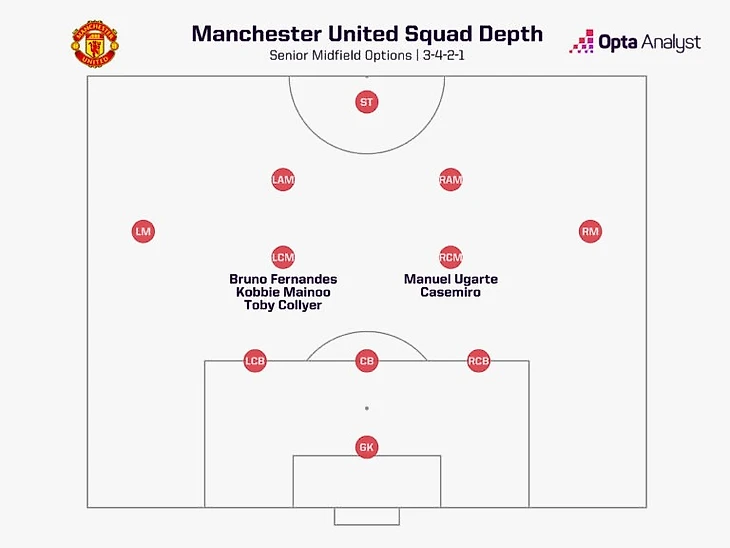На данный момент основные варианты — Бруну Фернандеш, Кобби Майну, Каземиро и Мануэль Угарте, тогда как Тоби Колльер, скорее всего, отправится в аренду. Прошлый сезон показал: найти среди них надежную связку практически невозможно.