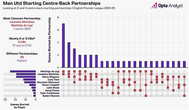Особенно тяжело ситуация сказалась на защите. Самый частый дуэт/комбинация в обороне выходил в старте вместе всего 7 раз — хуже, чем у любой другой команды Премьер-лиги.