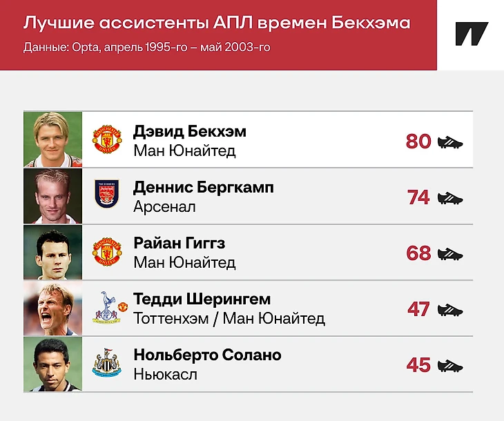 На пике Дэвид трижды становился ассистентом сезона в АПЛ, а за все восемь лет в лиге отдал 80 голевых передач. Ни у кого не было таких цифр.