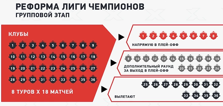 У многих экспертов (в том числе у меня) была уверенность, что новый формат Лиги Чемпионов не взлетит. Вопросы «ну как Лига Чемпионов будет без групп?!», «а почему бы не расширить турнир сразу до ста команд?!», «куда в и без того перегруженный календарь засунуть дополнительные 4 игры?», «как провести справедливую жеребьевку для единого турнира, когда туров 8, а команд 36?» до старта сезона оставались без ответа…