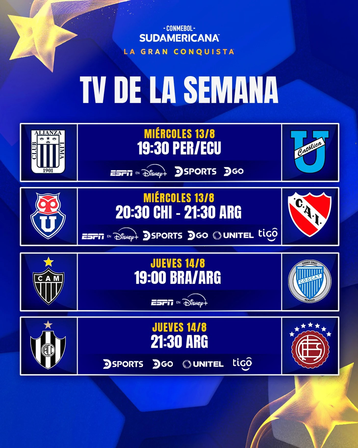«Альянса» уже сыграла два матча в плей-офф Судамериканы. В квалификационном раунде к 1/8 финала перуанцы встречались с «Гремио». По сумме двух матчей «Альянса» победила 3:1, команда смотрелась лучше бразильцев. Следующим соперником будет эквадорский «Универсидад Католика». Эквадорцы заняли первое место в группе Судамериканы, где играли с бразильской «Виторией», аргентинской «Дефенса и Хустисия», а также уругвайским «Серро Ларго».