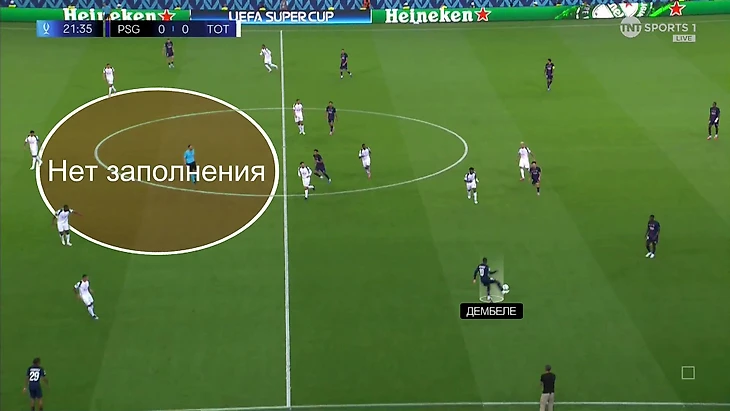 Есть и структурная проблема: «Тоттенхэм» на стандартах регулярно «перебрасывал» «ПСЖ», то есть забросом находил своего самого дальнего от мяча игрока.