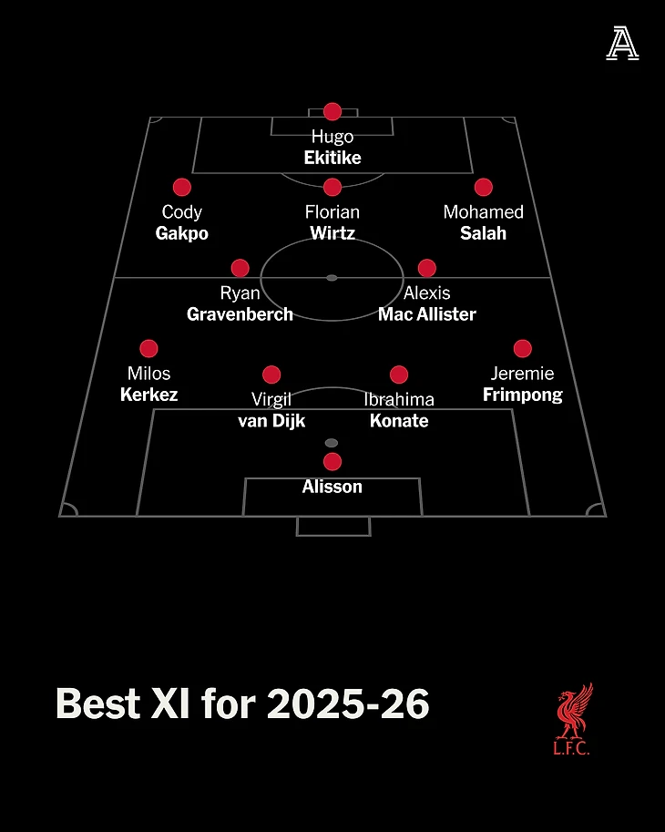 Крайние защитники Керкез и Фримпонг также нацелены на атаку, что делает атаку «Ливерпуля» еще более масштабной и непредсказуемой.