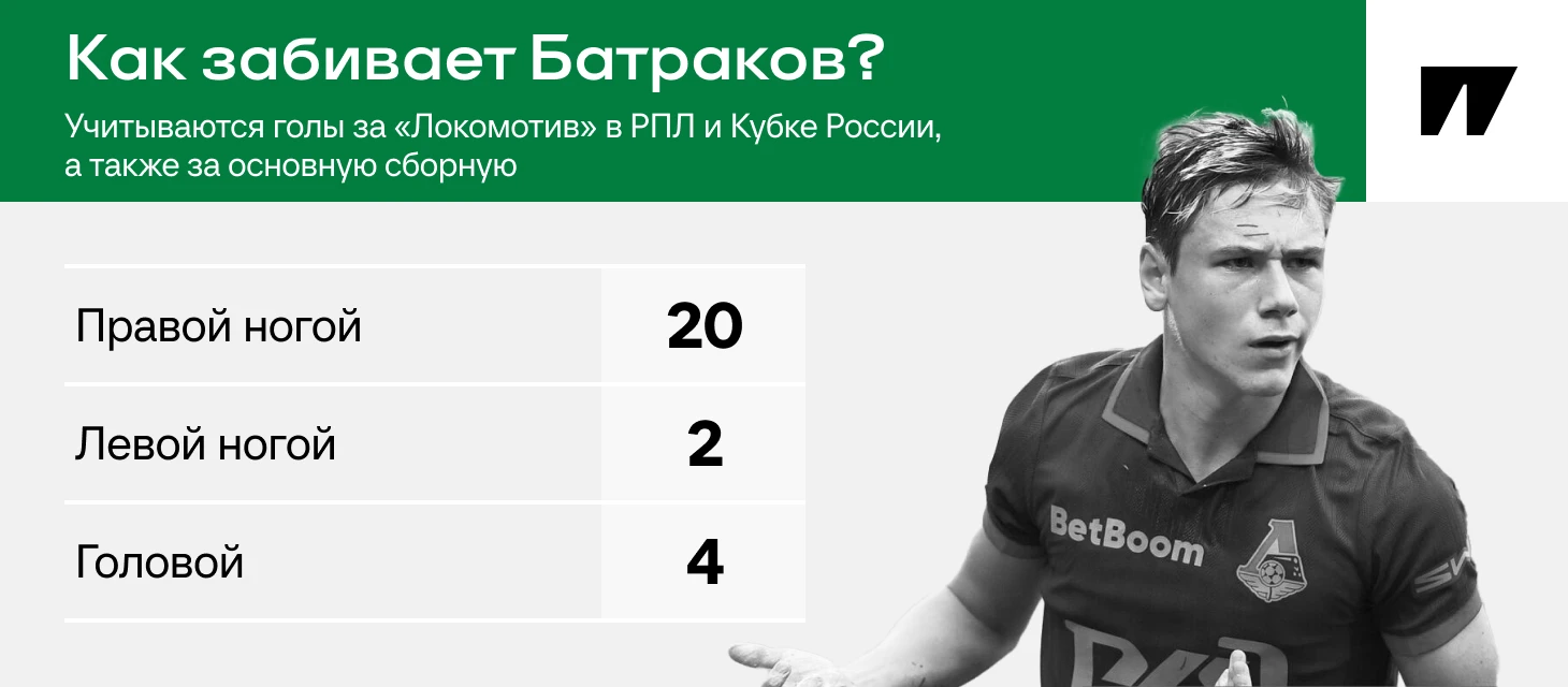 Ошеломляющий факт последних дней: половину голов в РПЛ-2025/26 Батраков забил головой – при росте всего 168 см! Таких мячей у него даже больше, чем с левой.
