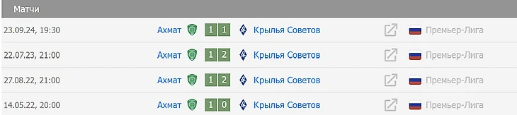 Всего «Крылья» в российской истории встречались с «Ахматом» на выезде в официальных матчах 19 раз: 10 раз победили хозяева поля, 4 раза была ничья, и лишь 5 раз «Крыльям» удавалось обыграть соперника — в 2008, 2013, 2016, 2022 и 2023 годах. Поэтому, как мы видим, победа нашей команды в Грозном — не частое явление.