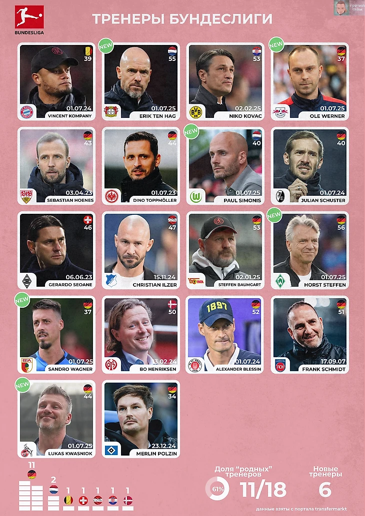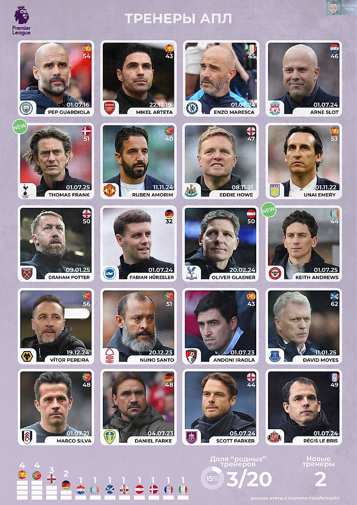 Сезон-2025/2026 стартовал! Самое время познакомиться с главными тренерами топ-5 лиг Европейского футбола. Это уже третья по счету статья из цикла о тренерах из топ лиг.