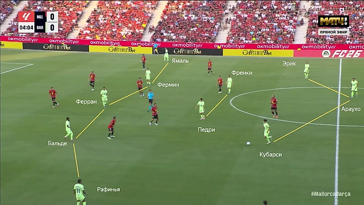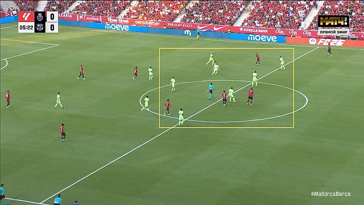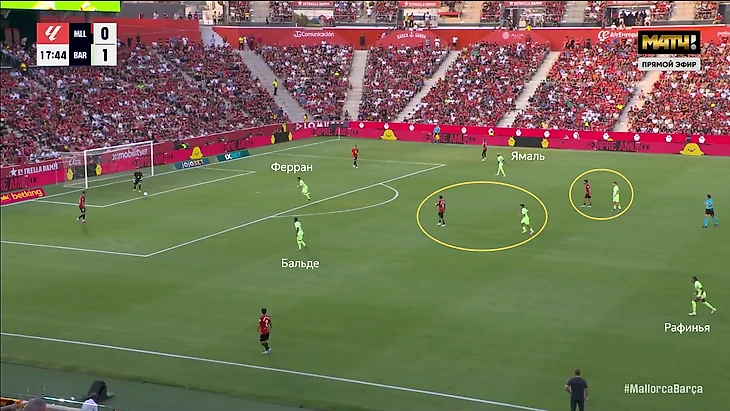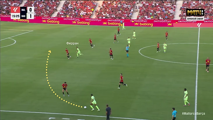 Если на острие будет появляться Ферран, то давление можно будет начинать с нападающего. Также появится больше возможностей для прессинга до упора до вратаря за счет дополнительного прессингующего игрока впереди. Против «Мальорки» нередко можно было наблюдать именно такой сценарий.