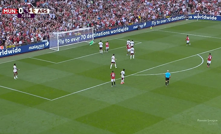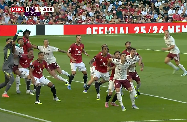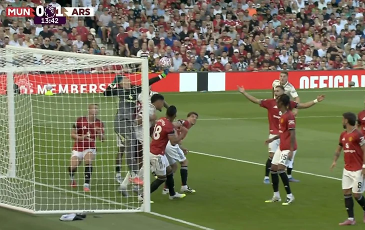 «Юнайтед» начинал активнее: старались встречать высоко, пару опасных атак разогнали Мбемо и Кунья. Но повел именно «Арсенал» – вышло очень спорно.