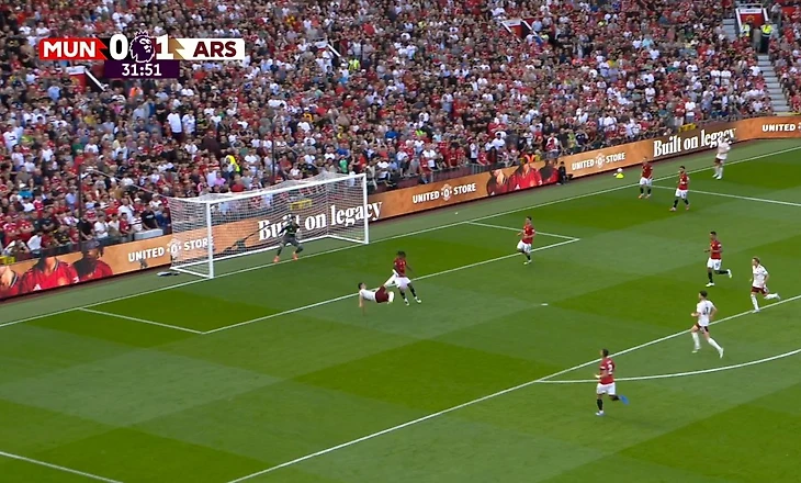 Шанс на результативное действие у Дьокереша был: на 31-й минуте он все-таки оказался в штрафной с мячом. Тогда нападающий навесил на дальнюю, но мимо Габриэля Мартинелли, он пытался бить ножницами.