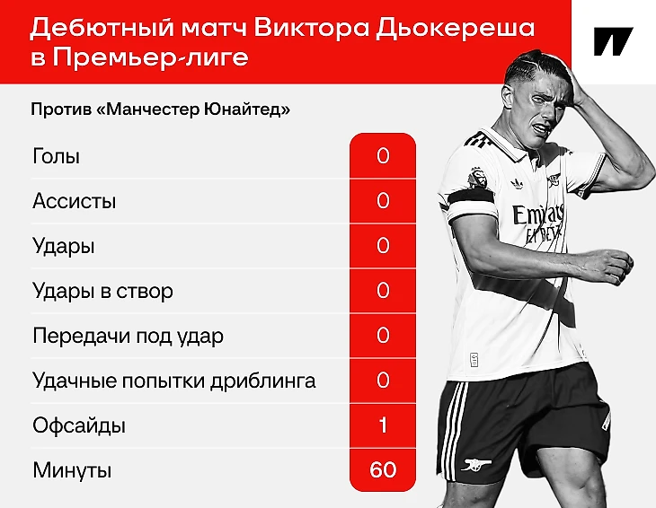 «Арсенал» в первом туре АПЛ победил на «Олд Траффорд» – 1:0 с «Манчестер Юнайтед». Вот только звездный новичок Виктор Дьокереш за час на поле не сделал почти ничего.